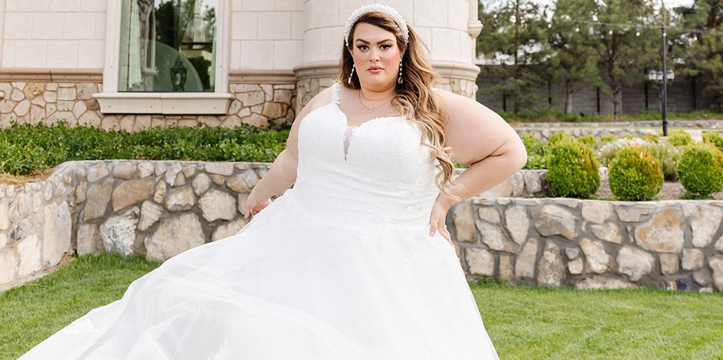 We know that wedding dress shopping can sometimes be stressful, no matter your size or shape. If you’re a plus size bride, be sure to do your research and don’t be afraid to call or email bridal boutiques near you to ask about their size selection. Be sure to include your clothing size because wedding dress sizes are sized differently from your average street size and are usually one or two sizes bigger.