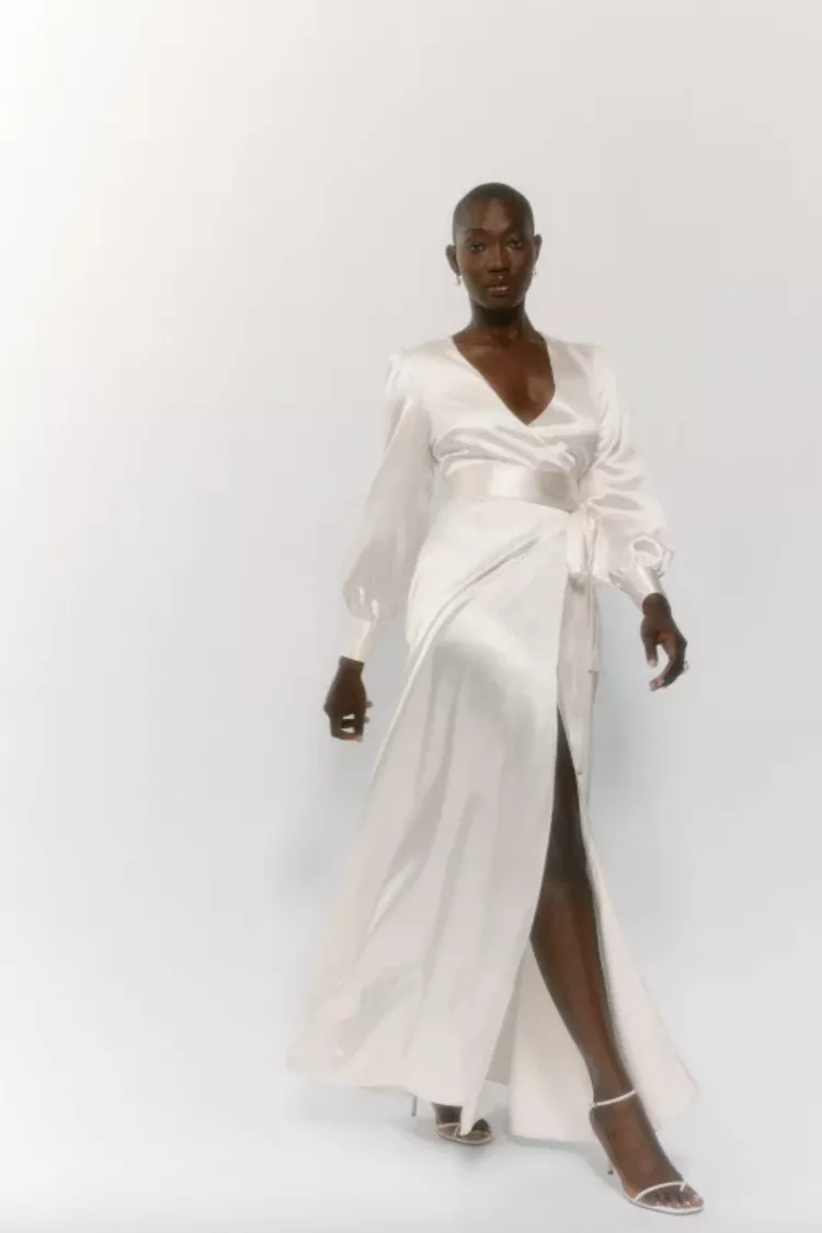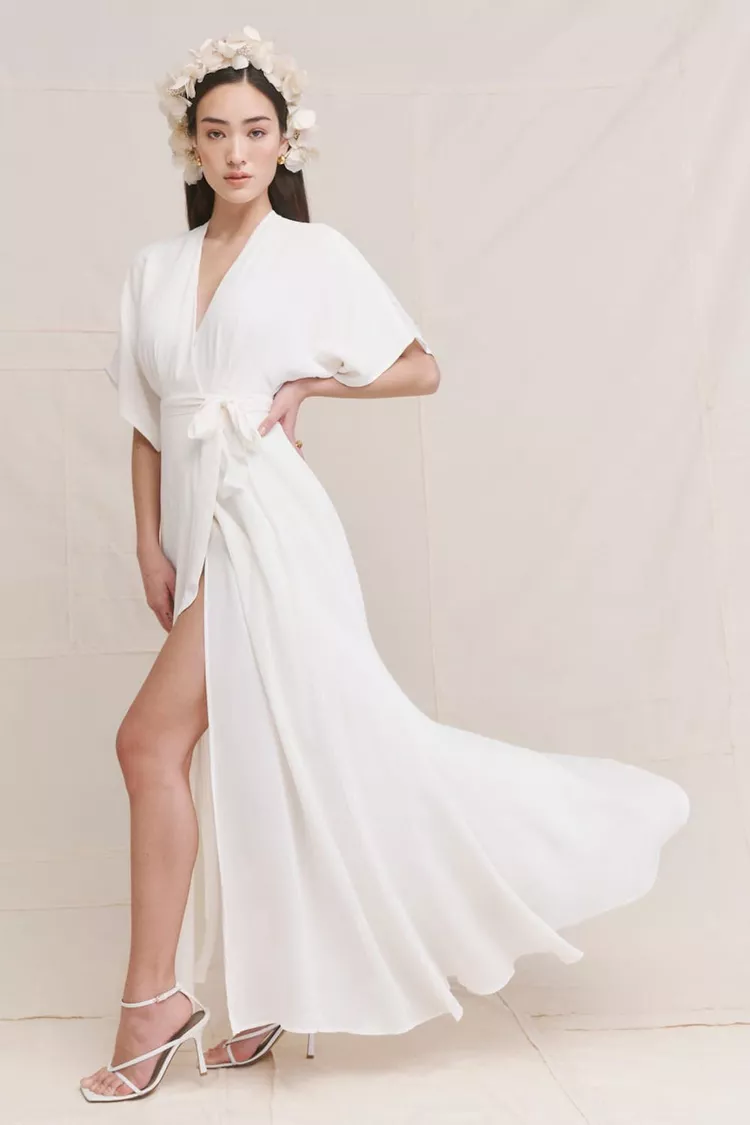 For a dress that exudes effortless, this wrap dress offers a change of pace. With this style, you can make the slit as open as you prefer.