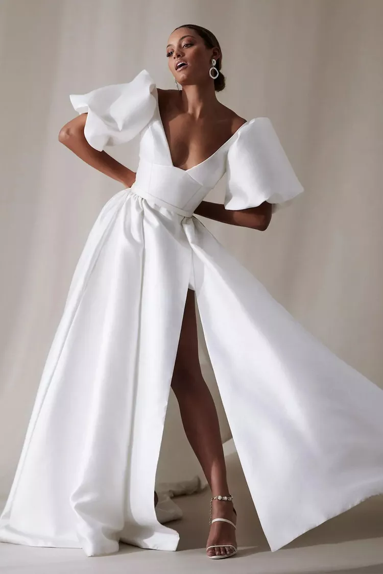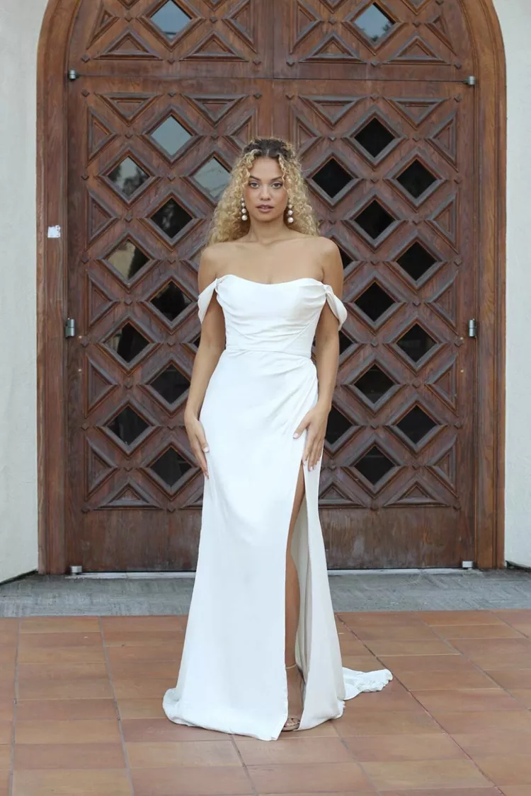 A few of our favorite designers to shop these leg-bearing gowns include Berta, Galia Lahav, and Martina Liana. Sites such as Net-A-Porter, Reformation, and MatchesFashion also provide an array of irresistible options ideal for the big day, beyond—or any other pre-wedding celebrations!