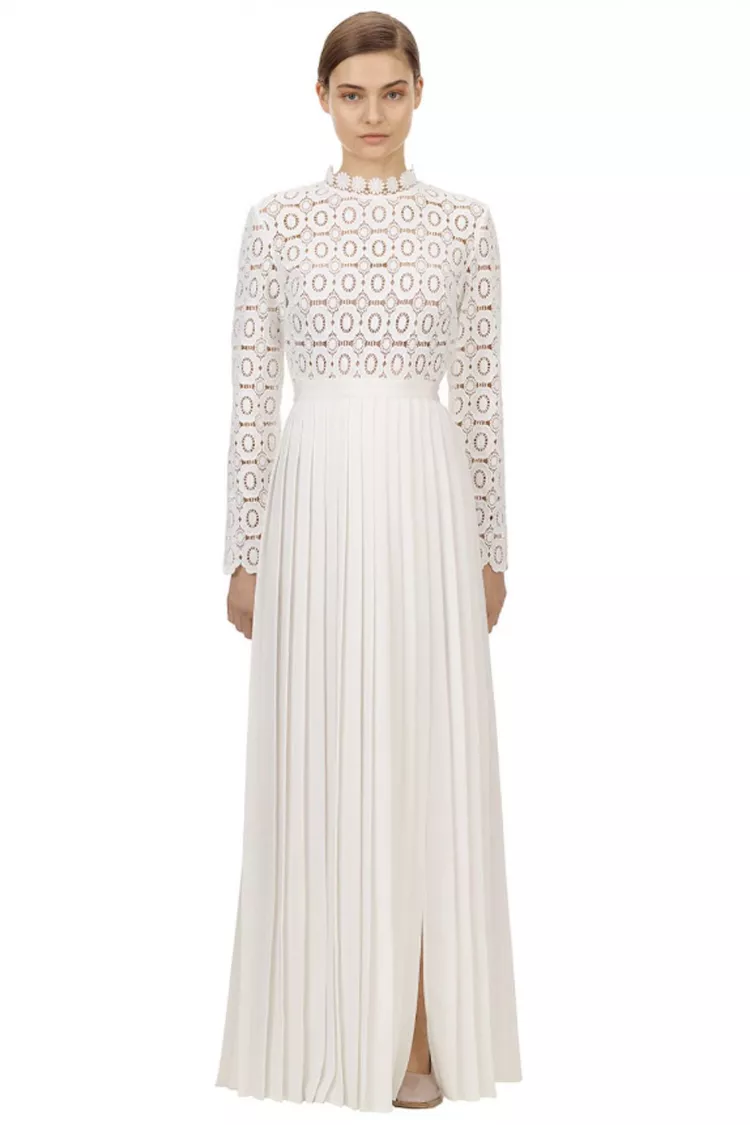 Most Mod/60s Inspired: Self Portrait Pleated Crochet Floral Maxi Dress