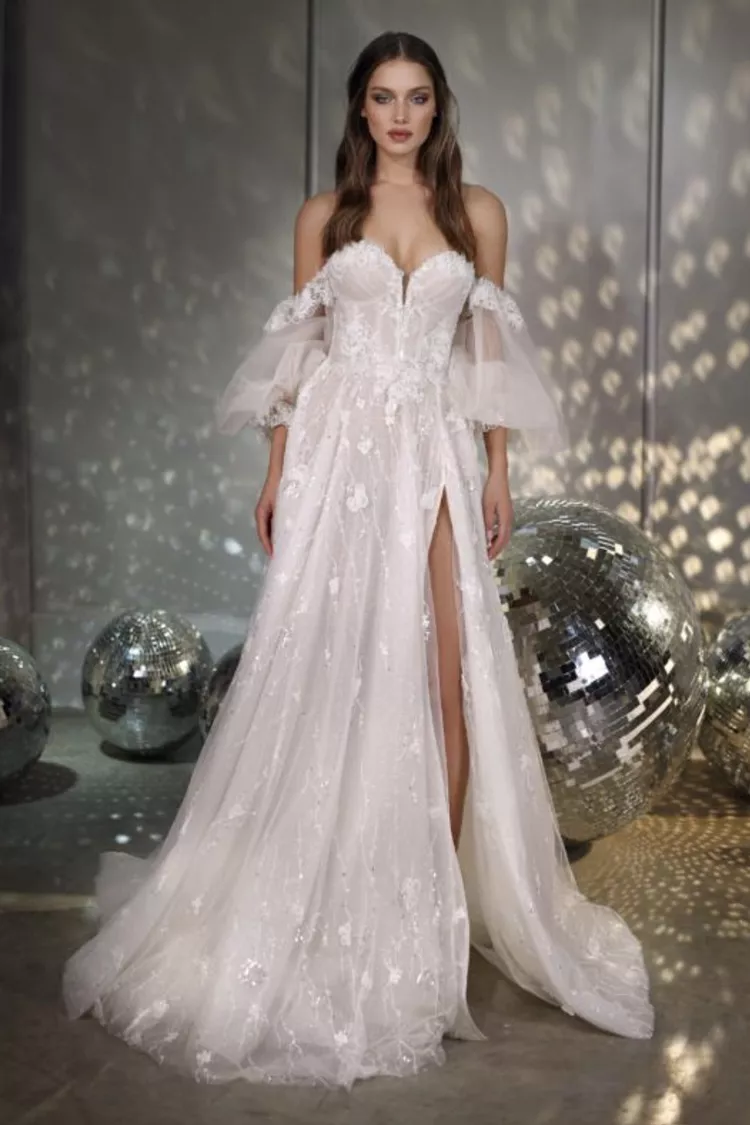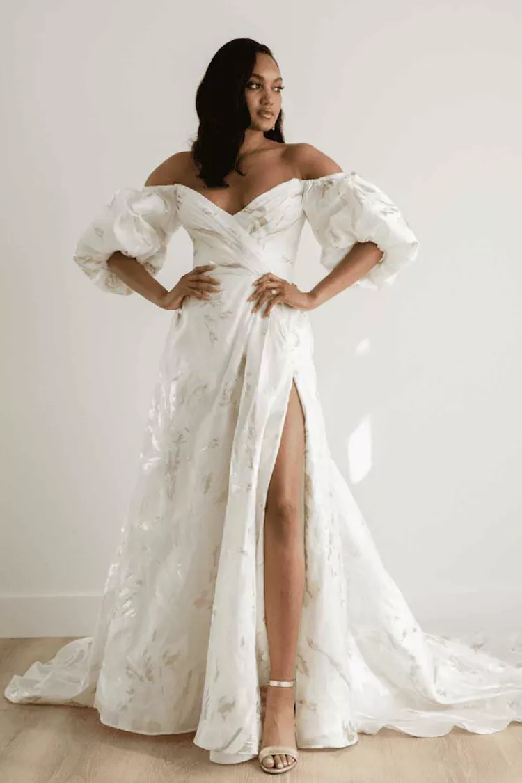 Finding a wedding dress is no simple feat, and that is especially true when searching for a gown that strikes a chord between a traditional bridal look and adding just a touch of sexy. If you’re looking to add a modern hint of va-va-voom to your wedding day look, a slit is a subtle yet striking way to do so—and still have the best of both worlds!