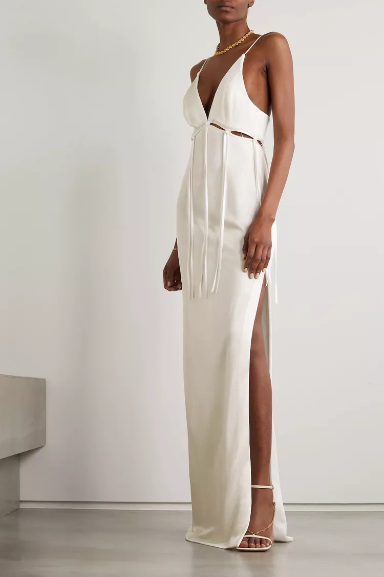 For a Beach Wedding: Galvan Ellipse Cutout Satin-Trimmed Jersey Gown