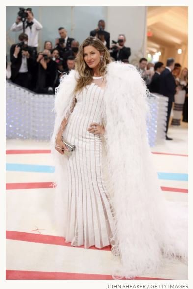 Gisele Bündchen looked every bit like a bridal angel straight out of Victoria’s Secret at the 2023 Met Gala. Her outfit, a beautiful creation pulled from Chanel’s Spring 2007 Haute Couture collection, was an excellent choice for the event. The simplicity of the column silhouette was perfectly complemented by the dramatic feather overcoat, creating an intriguing contrast that captured the attention of everyone on the red carpet. It was a stunning and unique ensemble that showcased Bündchen’s impeccable fashion sense.