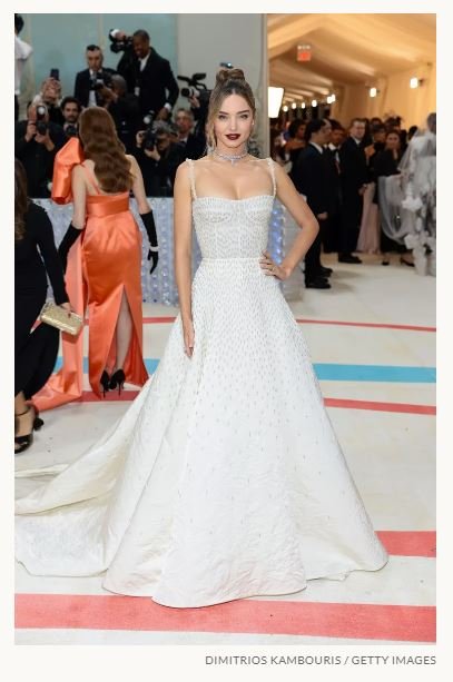 Miranda Kerr’s Dior gown was a show-stopping look at the 2023 Met Gala. The elegant A-line dress featured a strapless neckline and a full tulle skirt with floral appliques, giving off a dreamy and romantic vibe. We agree that this dress could certainly serve as inspiration for brides looking for a classic and timeless wedding gown.