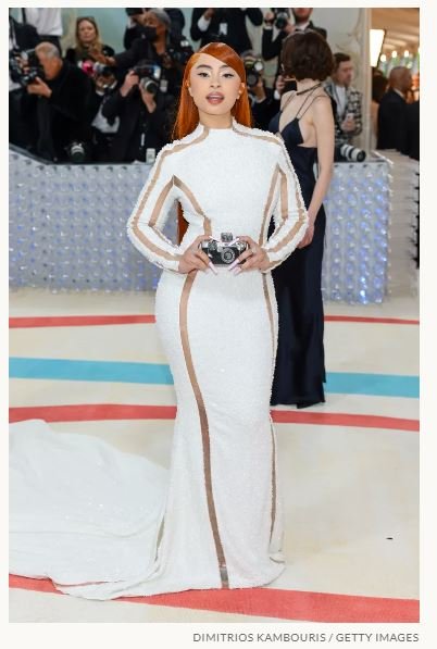Sporting a sleek long sleeve getup by Balmain, Ice Spice’s 2023 Met Gala dress is a bridal-inspired look for those who favor pared-back but sexy styles. We adore the non-traditional design elements of the look, including the sheer paneling and the body-hugging silhouette.