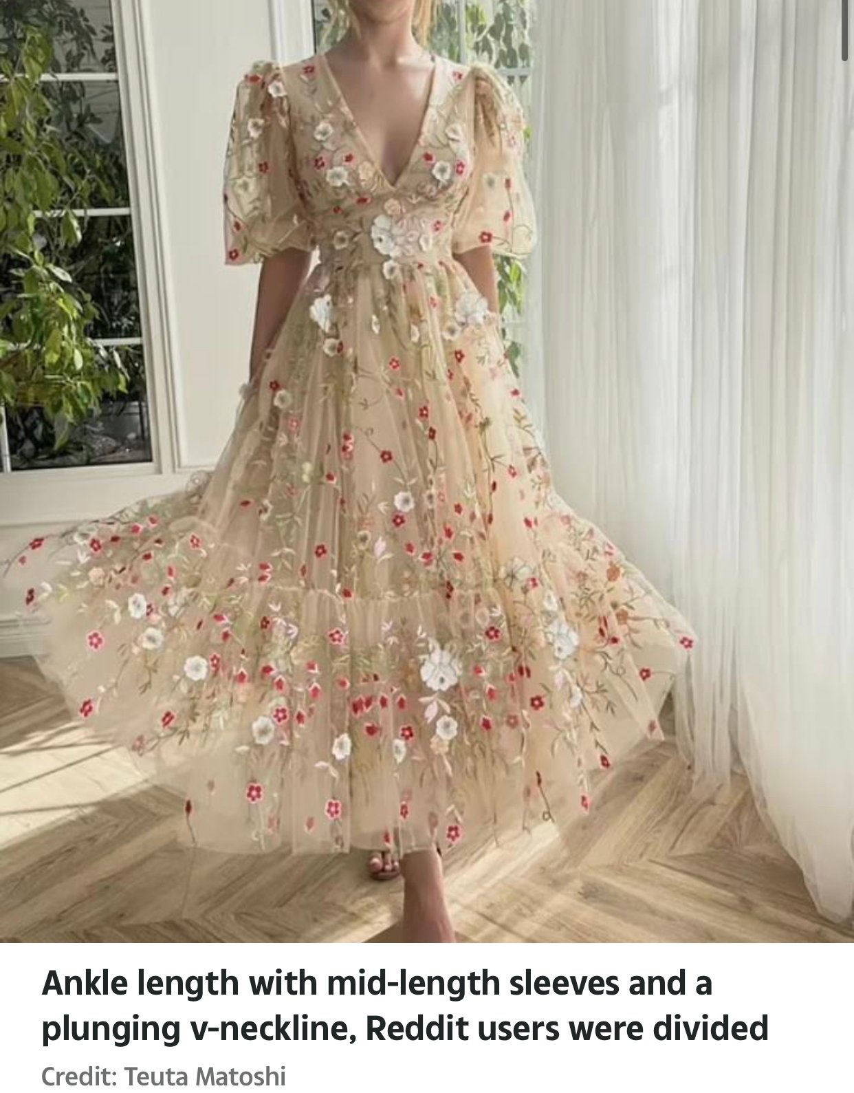Some commenters on the forum advised the bride against wearing a Teuta Matoshi dress that they felt was “too bridal” for the wedding’s theme. They suggested a more colorful dress or one with a less bridal silhouette. Although some felt the dress was not technically white, it still resembled a bridal gown.