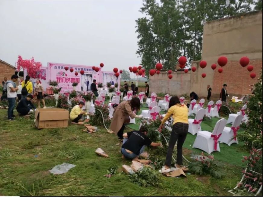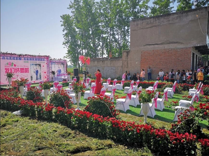 The groom invited around 50 guests from all over to attend the wedding in the rural village. He rented a bus to pick them up and reserved the entire second floor of a local hotel for them to stay in. The wedding ceremony was held in a 200-square-meter garden next to the groom’s house, which he transformed into a beautiful outdoor venue.