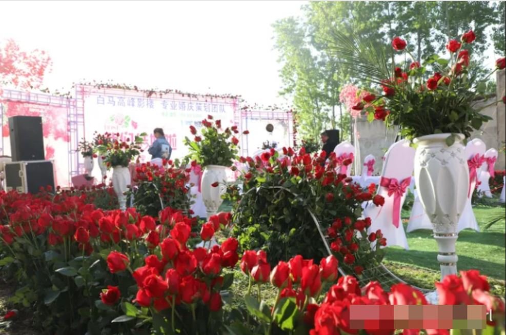 The groom had a special affinity for red roses, and he ordered 9999 red roses to decorate the venue, which he saw as a symbol of their love. He even used the money from their love insurance policy to buy the roses, which he and his friends arranged into beautiful bouquets and heart-shaped displays.