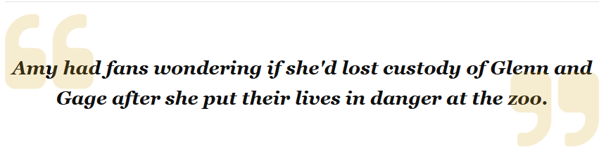 The arrest sparked speculation that Amy might permanently lose custody of 4-year-old Gage and 2-year-old Glenn. However, in May 2025, Amy set the record straight, confirming that she never lost custody and that both boys are now back in her care.