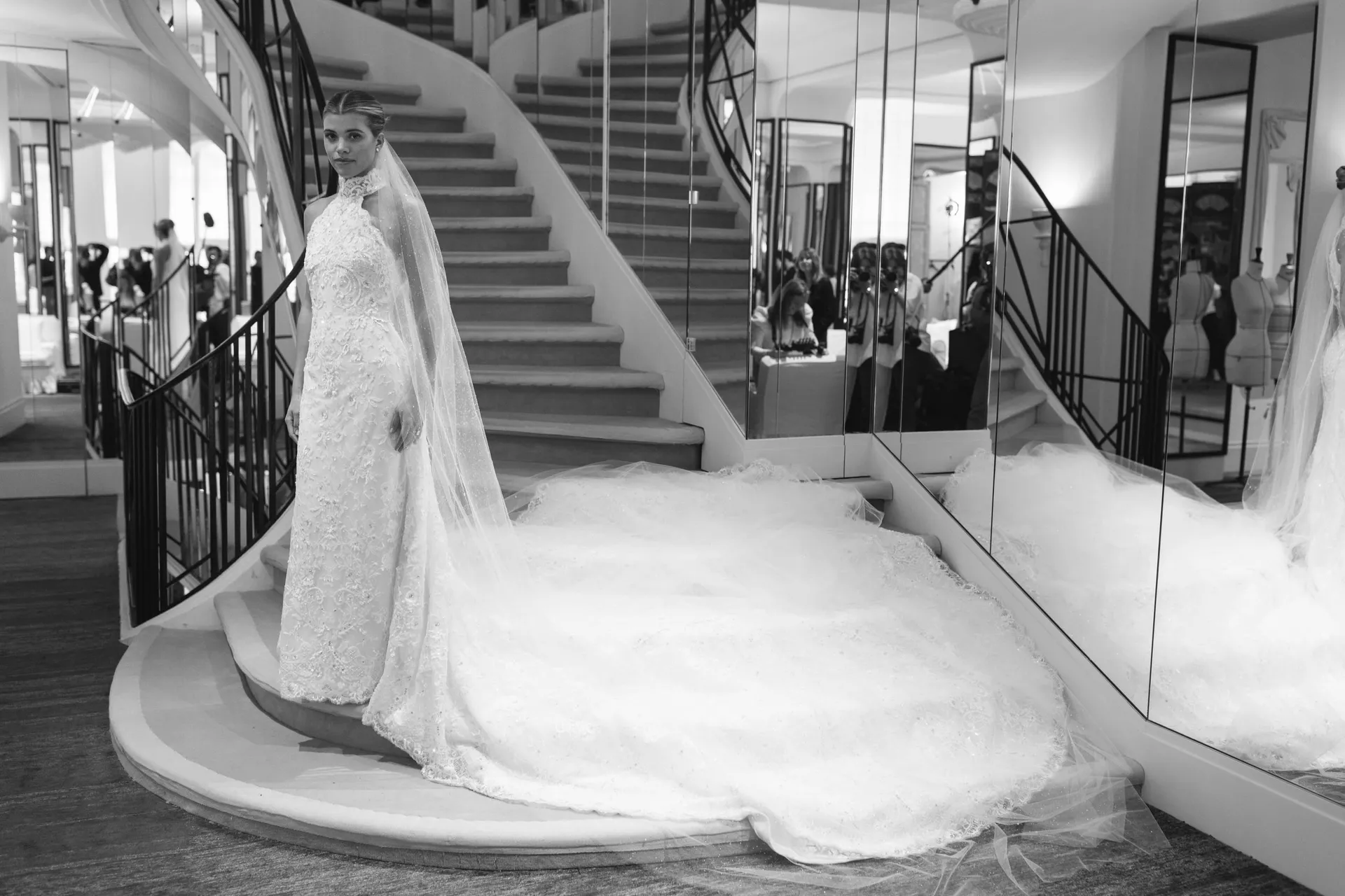 Sofia Richie, the 24-year-old model and designer, visited the Chanel haute couture salons in Paris for her final dress fitting with her mother-in-law, Lady Caroline Grainge, and her best friend, Ali Meller. The preview featured the dresses made for the rehearsal dinner, the ceremony, and the after-party. While Richie always envisioned a grand princess dress, she desired a simpler design as she got older, which was ultimately brought to life in a sophisticated and stunning way.