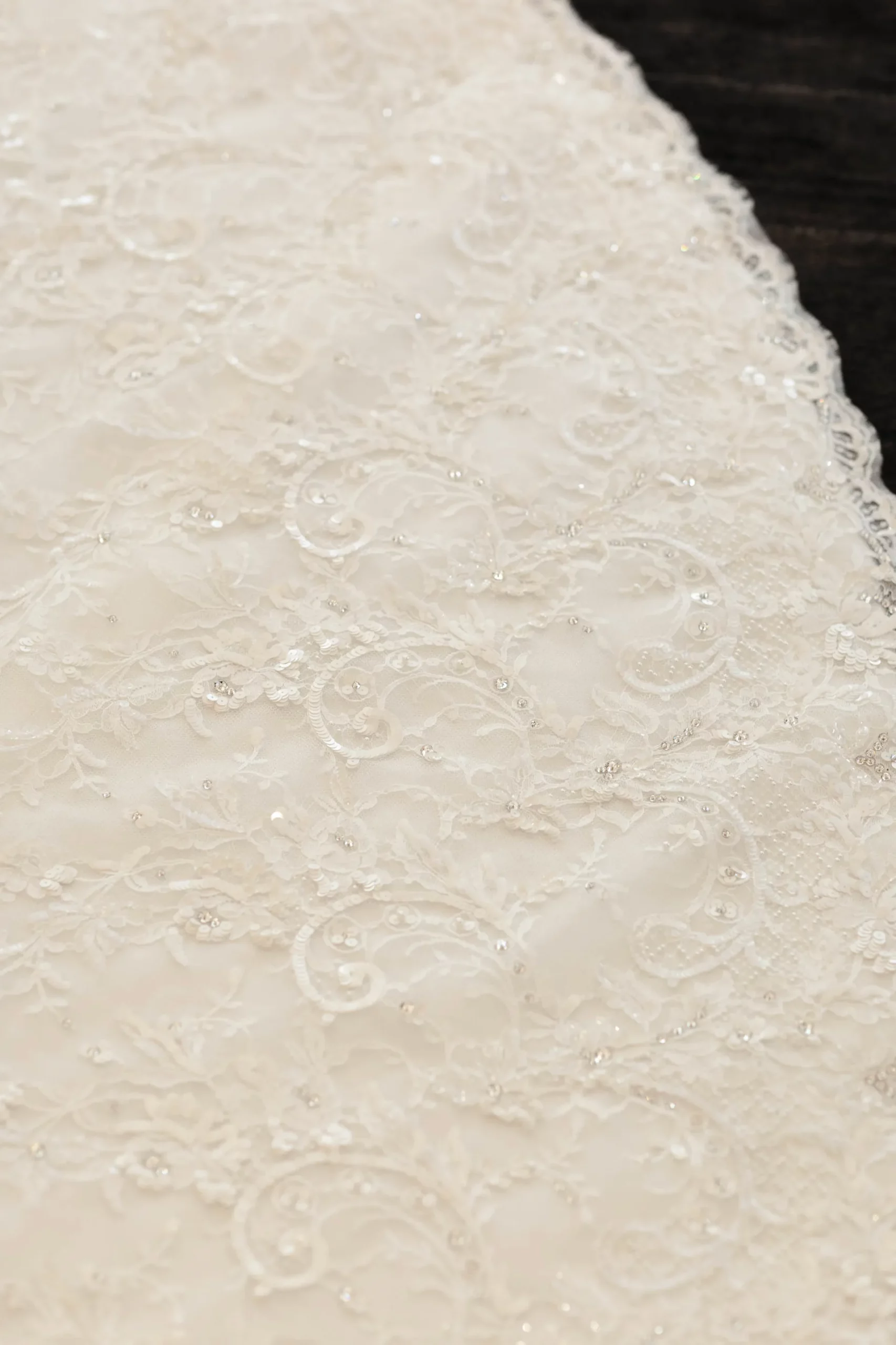 The train of Richie’s wedding dress was embellished with white and iridescent beads.