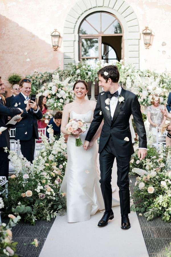 The couple had a Catholic ceremony at Chiesa della Certosa in Florence with their closest family and friends the day before their wedding. The next day, they had a symbolic ceremony at Villa Mangiacane with all their guests. The bride walked down the aisle escorted by her father while the Canone in D was playing, creating a truly romantic atmosphere.