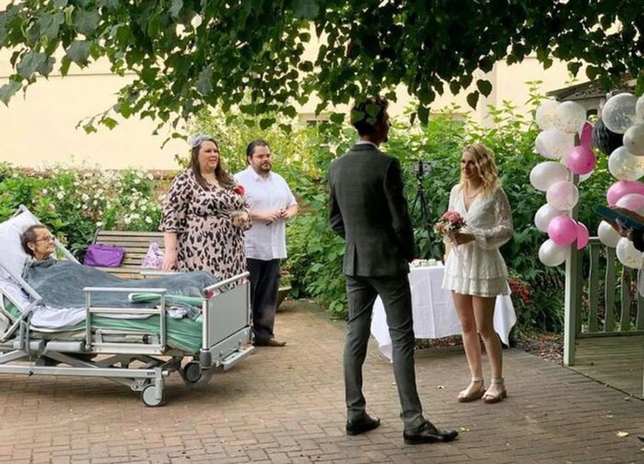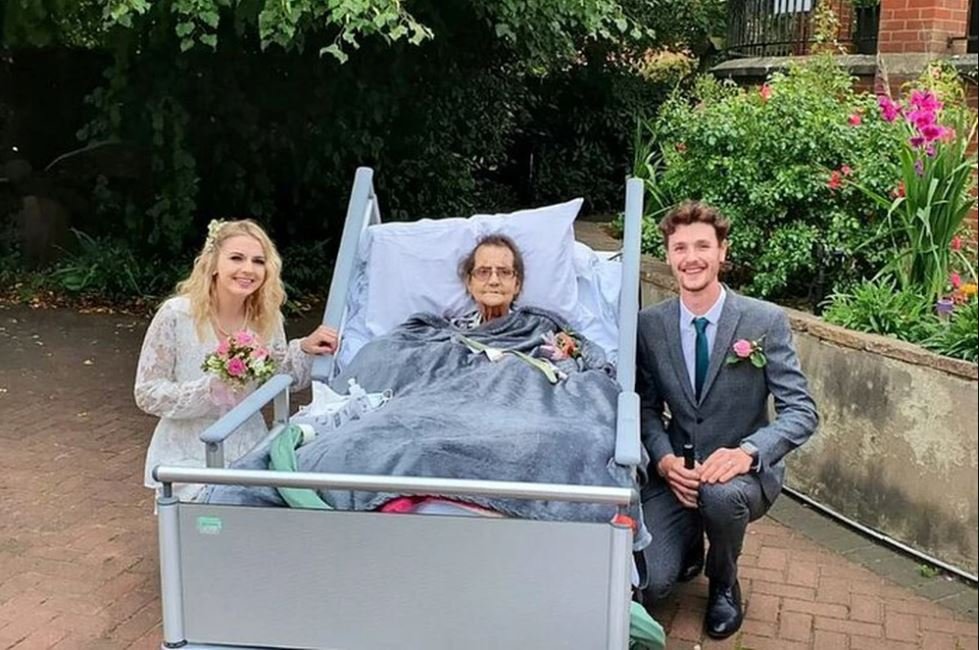 Only six people were allowed to attend the wedding due to COVID-19 restrictions. The couple had a socially distanced ceremony in the nursing home’s garden, with Vera watching from her bed. In a touching moment, Vera even gave the couple their wedding rings.