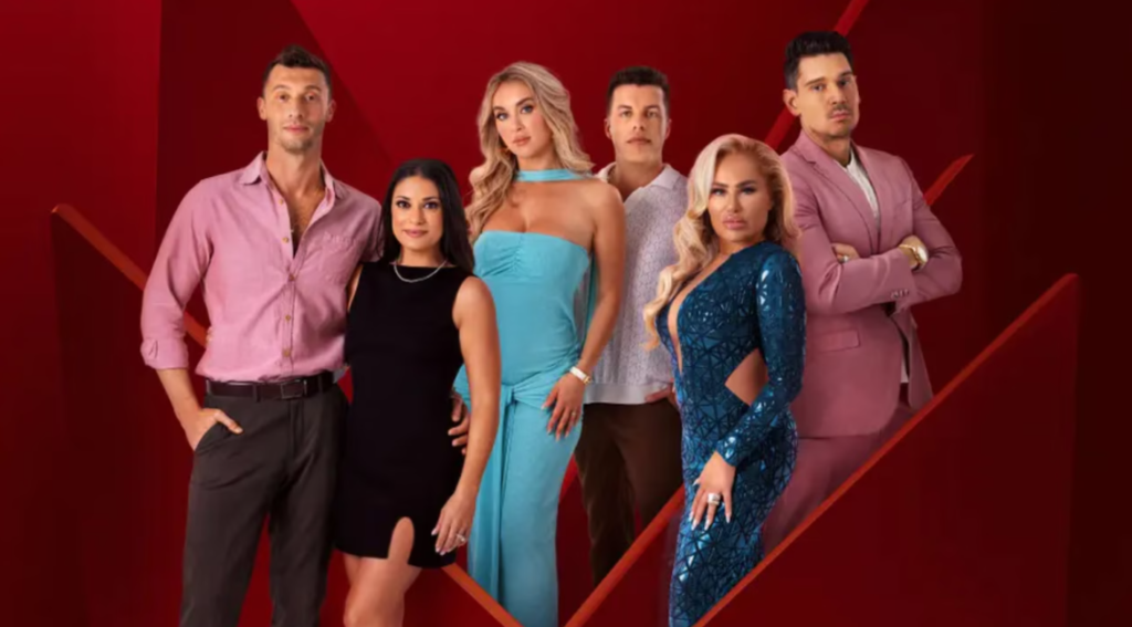 Gino & Jasmine, Brandon & Julia, Tigerlily & Adnan, Kara & Guillermo, Jovi & Yara, Elizabeth & Andrei, Loren & Alexei, and Darcey & Georgi — all navigating the challenges of married life beyond the honeymoon phase.