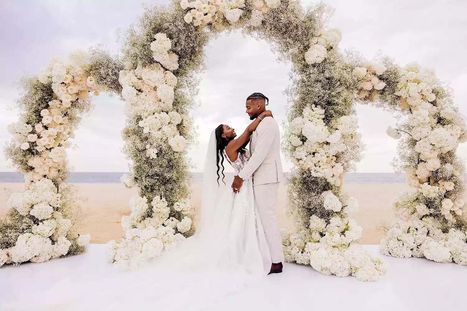 After their intimate courthouse wedding in April, Biles and NFL player Jonathan Owens held a second ceremony in Cabo San Lucas on Saturday. Biles shared with Vogue that she felt extremely nervous on her big day and was worried about wearing a ball gown since she’s petite. However, the dress worked perfectly, and the leg slit was crucial in adding more length to her body. Biles felt “luxurious, beautiful, and on top of the world” in her wedding dress, and Lahav’s design proved to be a great success.