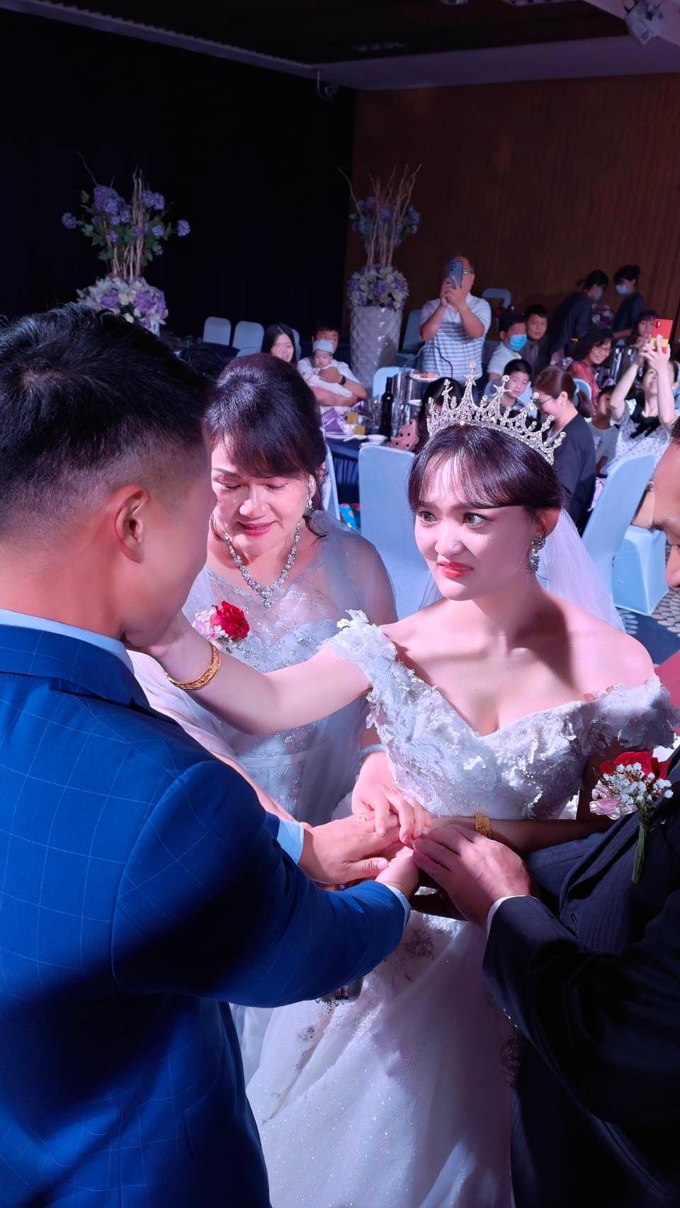During the wedding held at a luxurious restaurant, the groom couldn’t help but get emotional as he walked into the ceremony hall, with tears streaming down his face, leaving his father-in-law confused. Many relatives and friends present at the event laughed when they witnessed this scene, jokingly saying, “There’s no returning the goods now,” “The groom must be so happy because he has a wife,” “Emotions are out of control for anyone who gets married.”