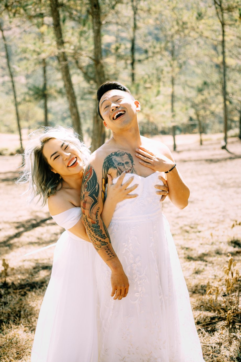 The idea for the photoshoot came from a challenge by Thanh Tam, and Dang Le agreed to it without hesitation because he wanted to see his wife smile.
