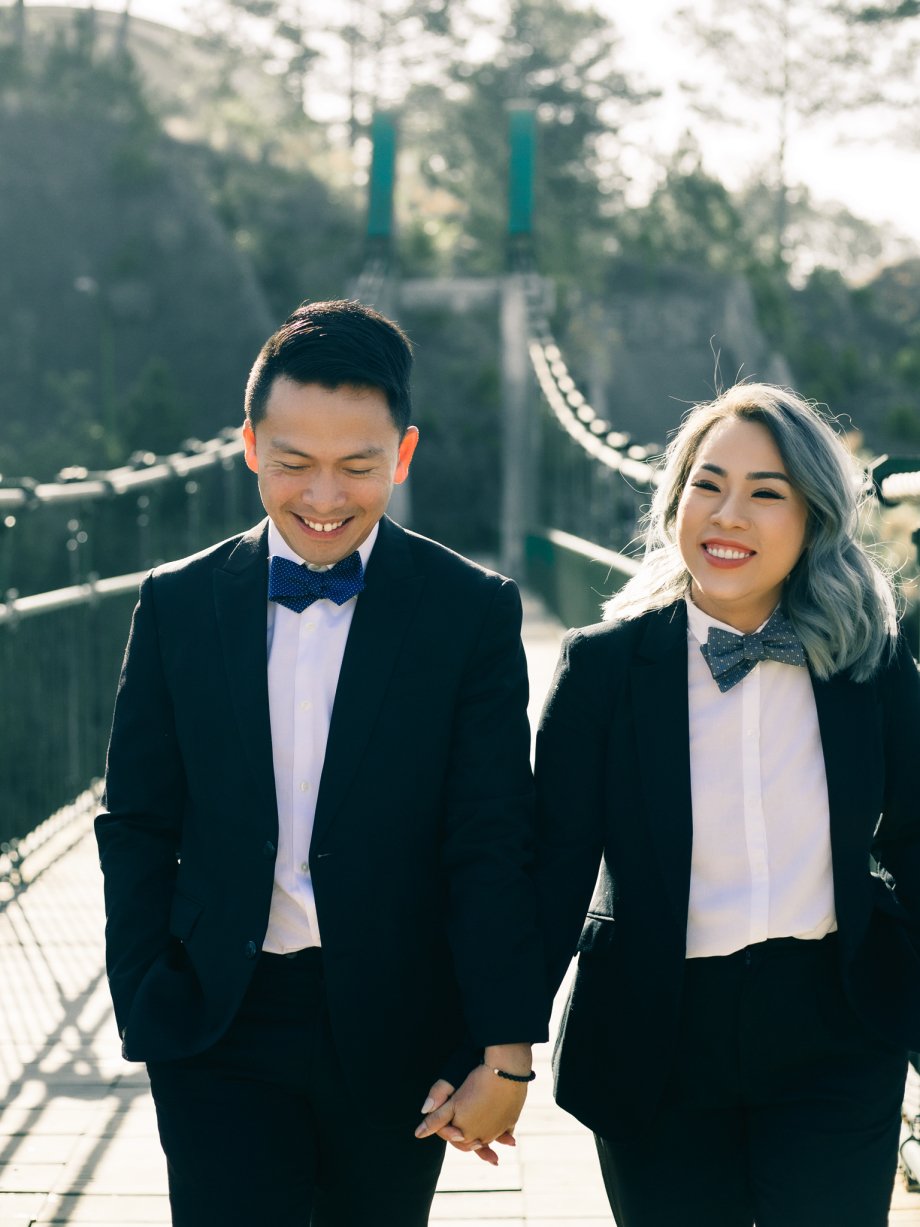 Dang Le (a postal worker) and Thanh Tam (a coffee shop owner) are currently living in Texas, USA. The couple decided to travel to Vietnam to create a unique wedding photo collection. Speaking about their “Two Suits, Two Dresses” concept, Dang Le said, “The idea came from a challenge by Tam. I don’t really care about anything else, I just want to make Tam happy. When we did this photoshoot, I didn’t want people to think that I did it just to please Tam. I agreed to this concept because I really liked it, and it’s important for me to see Tam smile.”