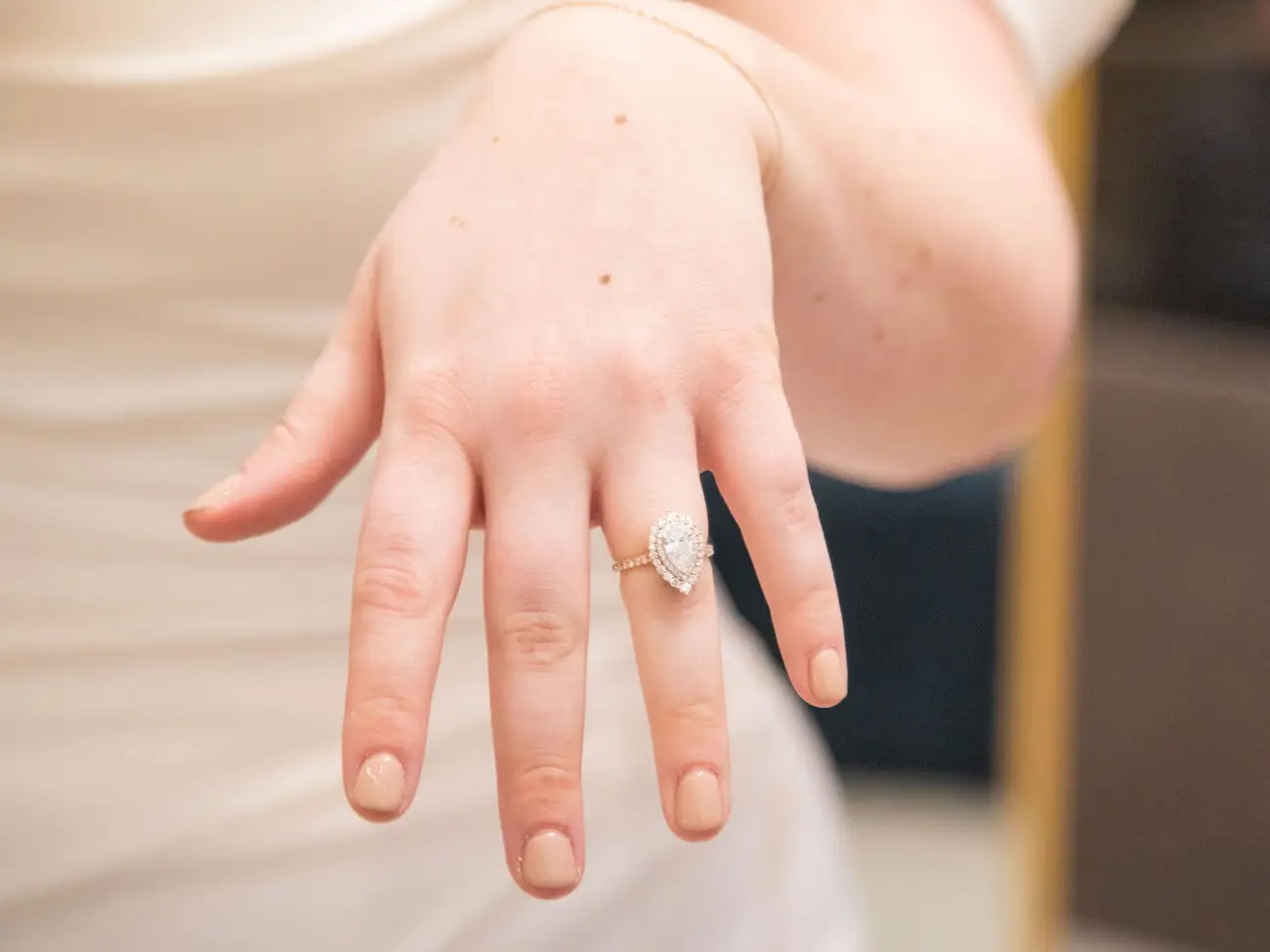 I wore a $6,119 two-carat, pear-shaped ring in rose gold with the Anne Barge gown.
