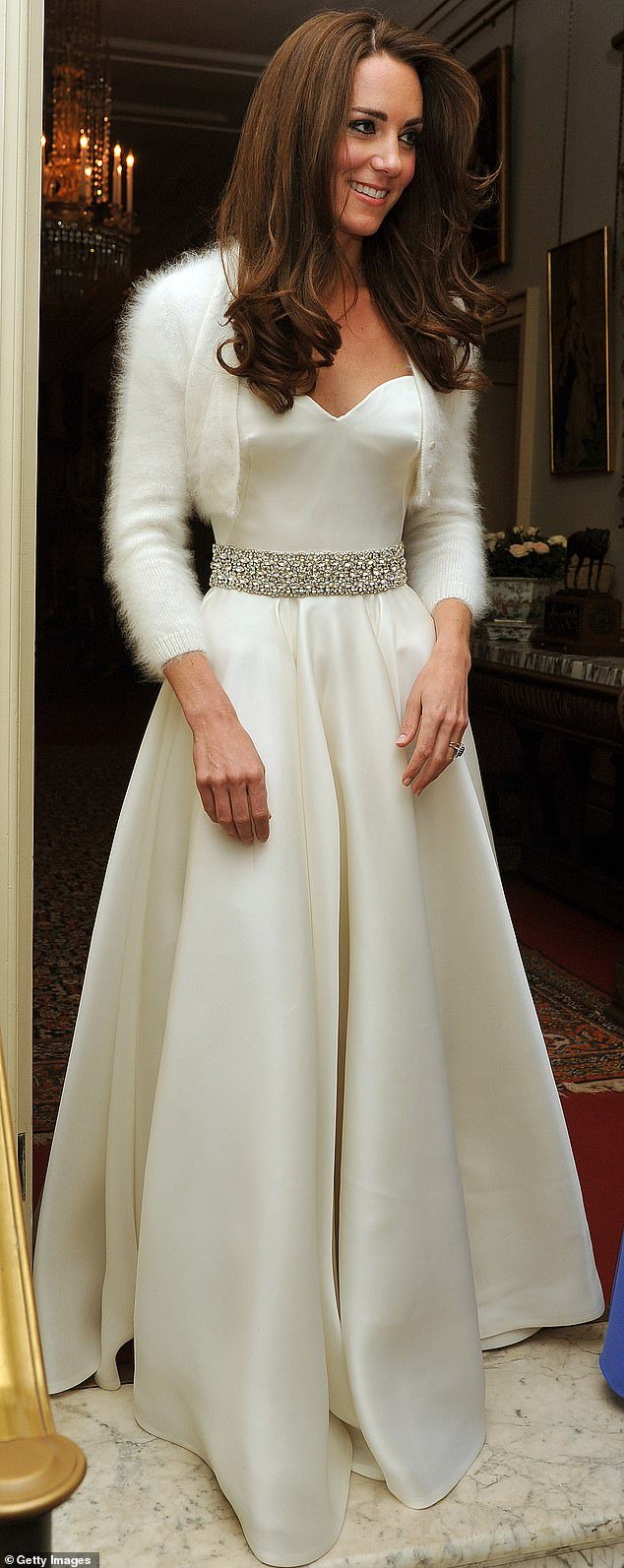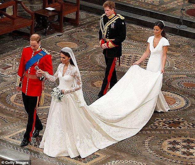 For the ceremony at Westminster Abbey on April 29 2011, Kate wore an ivory Alexander McQueen dress, with a satin bodice, lace sleeves and slight padding at the hips, went on to inspire a generation of brides-to-be