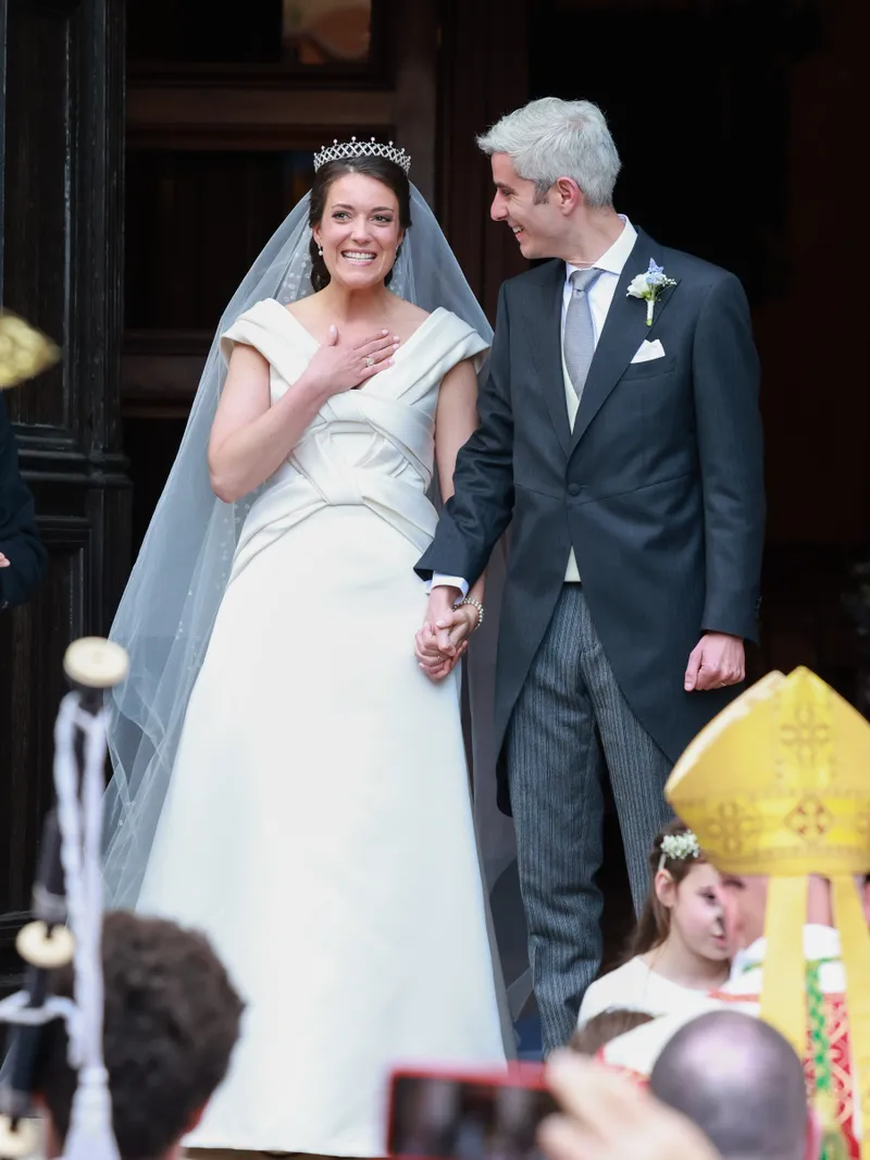 The religious wedding ceremony followed a civil ceremony that took place a week prior, during which Princess Alexandra opted for a more understated look, donning a Valentino cape and a Maison Natan blouse and trousers. In keeping with bridal tradition, Princess Alexandra accessorized her outfit with a white Chanel handbag and a pair of towering nude stilettos. The groom, who is known for his signature bleach blond hair, looked dashing in a navy suit paired with a sky blue tie.