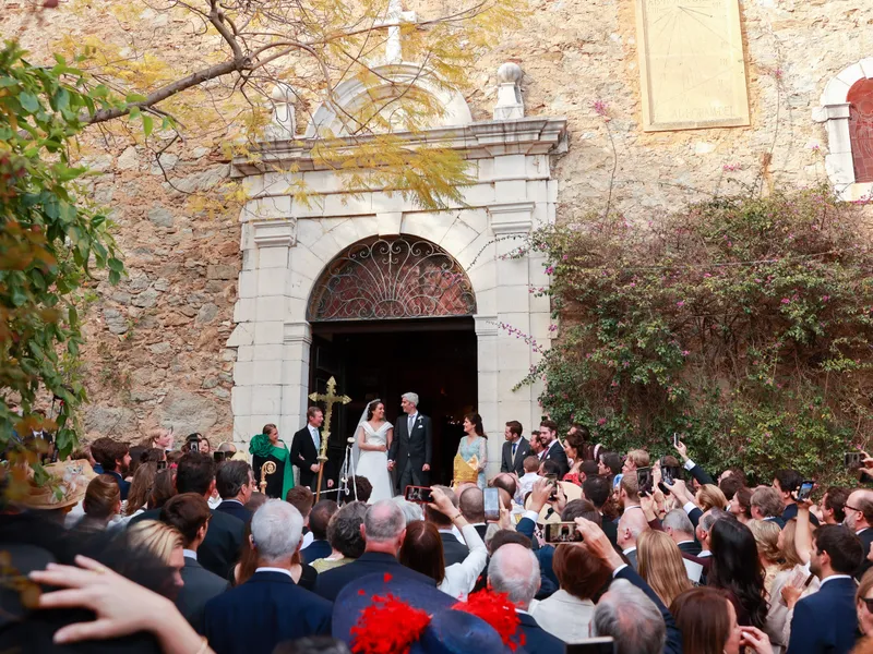 Following the service, the bride and groom left the church and were greeted by well-wishers and members of the press. A waiting crowd congratulated the couple as they left the wedding in movie star style: in a vintage convertible decorated with fresh flowers.