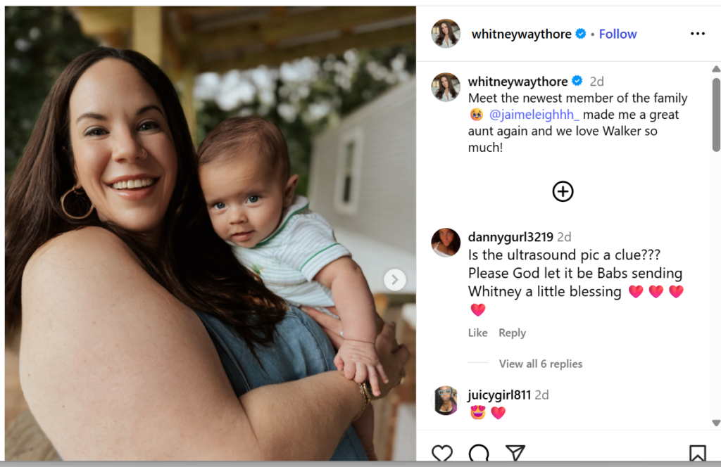 Whitney Way Thore, star of My Big Fat Fabulous Life, is celebrating a heartwarming family milestone as she introduced the “newest member” of her family—her niece’s newborn baby.