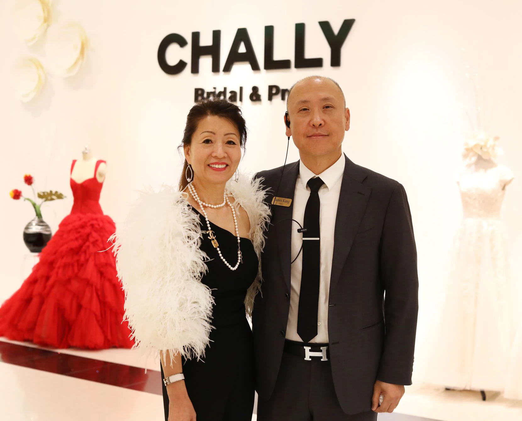 The Kangs operated a bridal salon for 25 years in St. Louis before moving to Texas where their son and daughter had settled. Chally is a mashup of their son’s and daughter’s names, Chris and Ally.