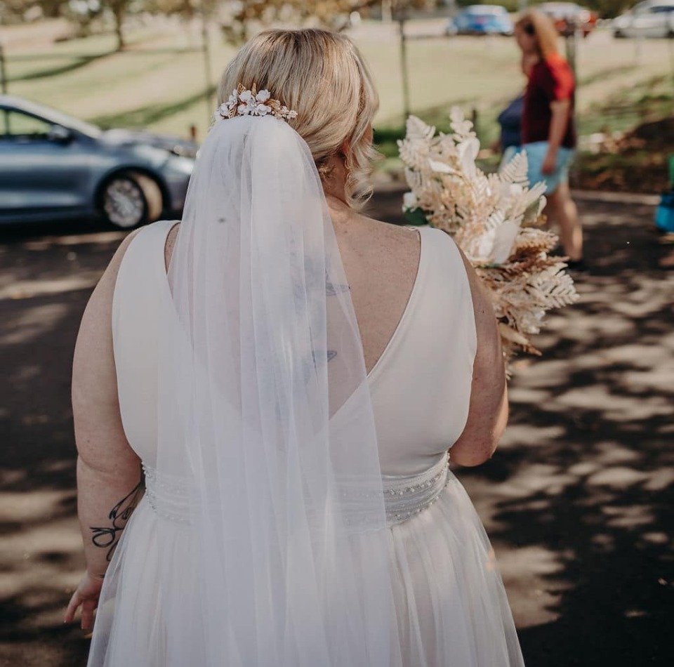 “It cost me AU$98, my veil was AU$7, the earrings were AU$2.95 and the floral hairpiece was AU$4.95.”
