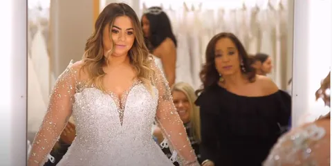 When Theresa Caputo, of the TLC show Long Island Medium, and her daughter went dress shopping for Victoria’s wedding dress, everyone was awestruck by the plus size ballgown that the bride-to-be walked out in. The illusion neckline and crystal embellishments flattered the dress and made Vicotria look like a Long Island Princess.