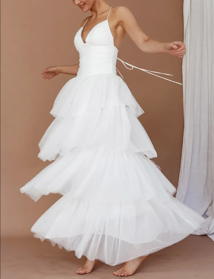In case the dress does sell out (which I predict it will), there’s a similar style on the website called the “Nightingale Tiered Mesh Maxi Dress,” which retails for $250.