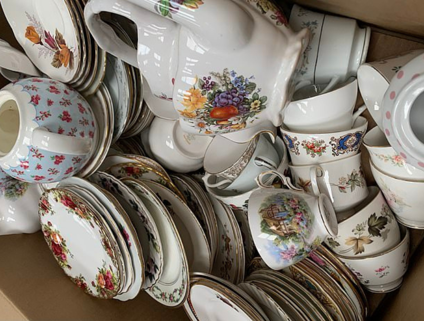 Mark and Drabble were gifted some porcelain dishes by a closed café, and they also borrowed plates and glasses from friends to avoid incurring extra expenses.