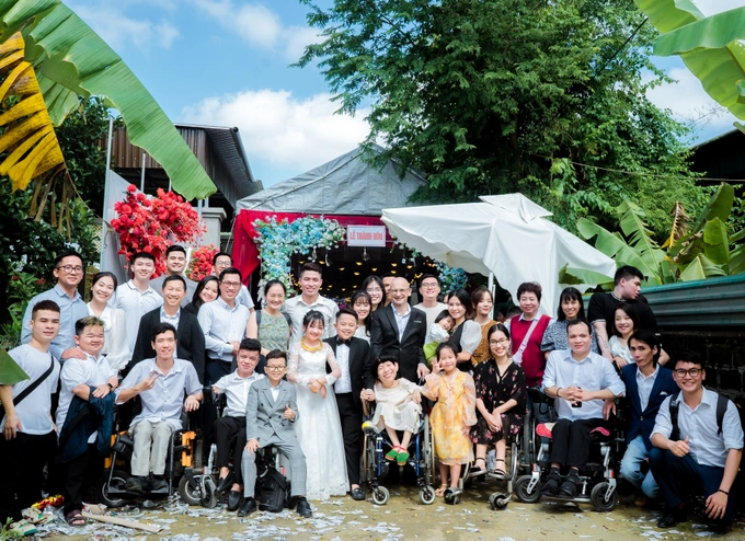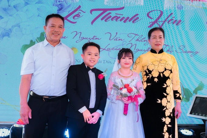 Mr. Nguyen Van Thang, standing at 1.35m tall, and the bride, Nguyen Thi Suong (born in 1991) at 1.3m tall, did not feel inferior to the guests, thanks to their radiant and happy faces.